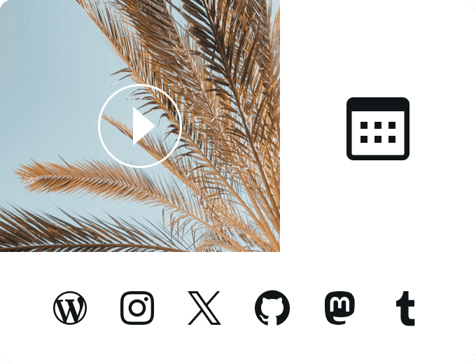 连接您的社交网络、作品集、视频和音乐。 让人们通过您的日历预约时间。